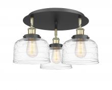 Bell - 3 Light - 20 inch - Antique Brass - Clear Deco Swirl Shade - Semi-Flush Mount