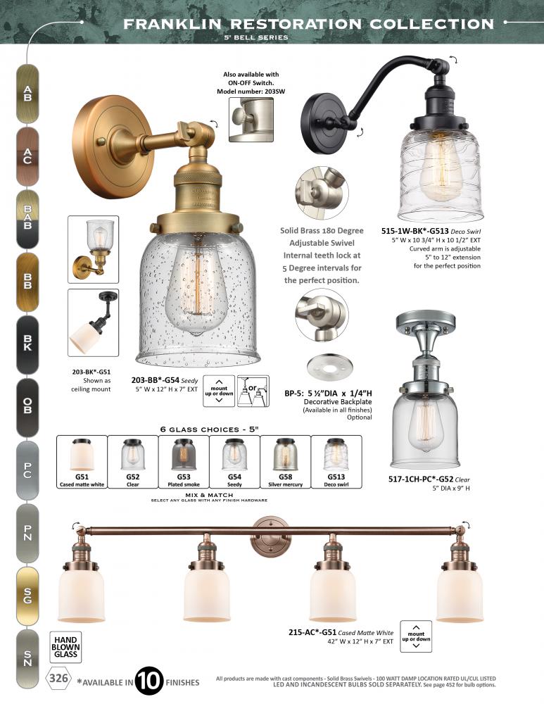 The Franklin Restoration collection is comprised of heavy cast components that give the fixture a heavy Industrial look and feel. We offer the fixture in 10 finishes with a Bare Bulb look or with over 100 possible metal and glass shade options that can cha