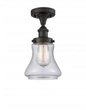 Bellmont - 1 Light - 6 inch - Brushed Satin Nickel - Clear Shade - Semi-Flush Mount
