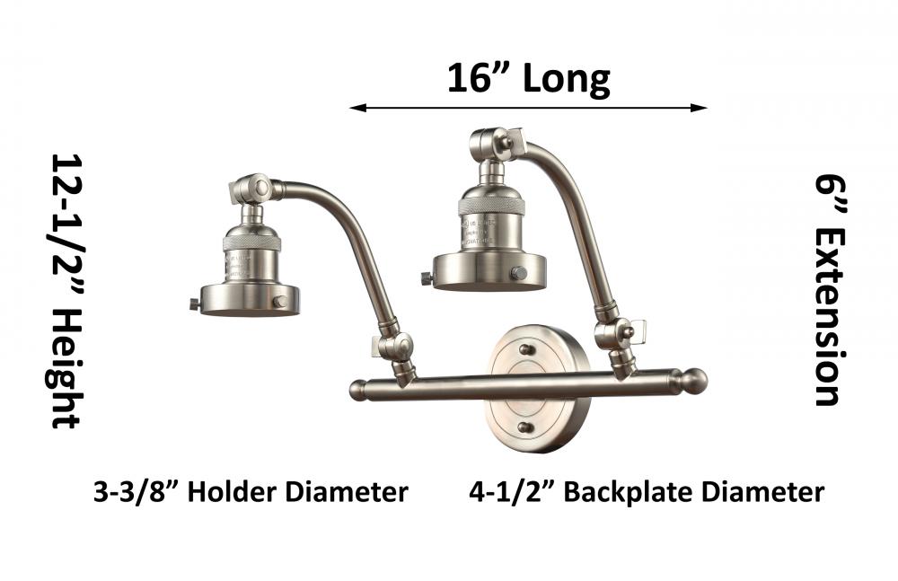 Each Arm Includes Two Solid Brass 180 Degree Adjustable Swivels that allow for the arm and socket to be adjusted up and down and loccked into place.