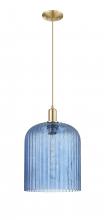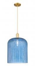 Bridal Veil - 1 Light - 12 inch - Antique Brass - Blue Bridal Veil Shade - Cord hung - Mini Pendant