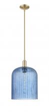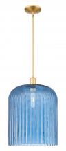 Bridal Veil - 1 Light - 12 inch - Antique Brass - Blue Bridal Veil Shade - Mini Pendant