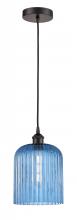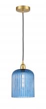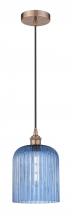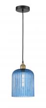Bridal Veil - 1 Light - 5 inch - Antique Brass - Princess Blue Bridal Veil Shade - Cord hung - Mini Pendant