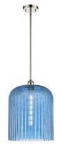 Bridal Veil - 1 Light - 5 inch - Antique Brass - Princess Blue Bridal Veil Shade - Mini Pendant