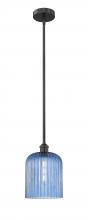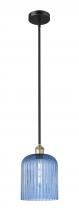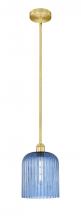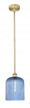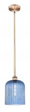 Bridal Veil - 1 Light - 5 inch - Antique Brass - Princess Blue Bridal Veil Shade - Stem hung - Mini Pendant