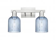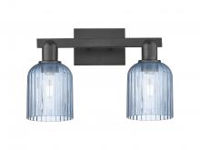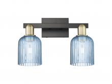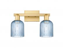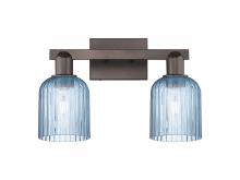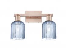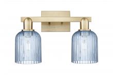 Bridal Veil - 2 Light - 16 inch - Antique Brass - Blue Deco Swirl Shade - Bath Vanity Light
