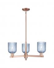 Bridal Veil - 3 Light - 18 inch - Antique Brass - Blue Deco Swirl Shade - Pendant