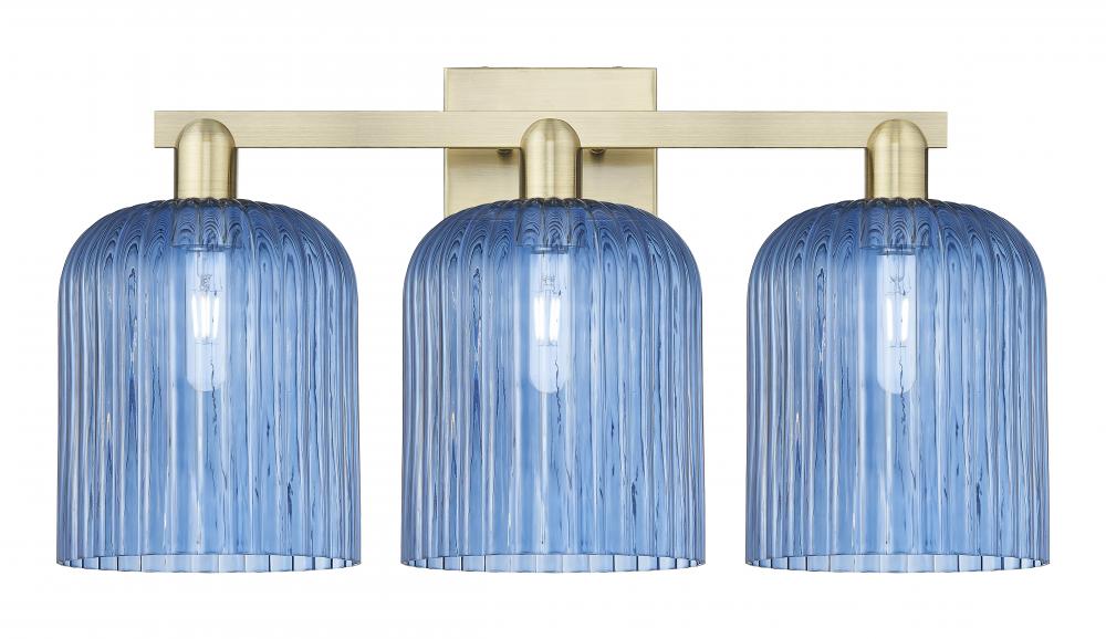 Bridal Veil - 3 Light - 27 inch - Antique Brass - Blue Bridal Veil Shade - Bath Vanity Light