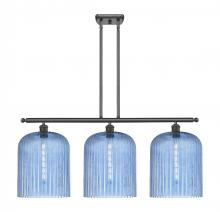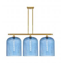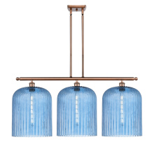 Bridal Veil - 3 Light - 36 inch - Antique Brass - Princess Blue Bridal Veil Shade - Stem hung - Island Light
