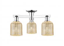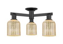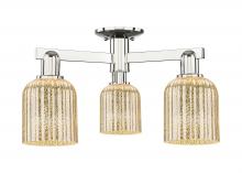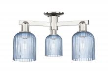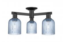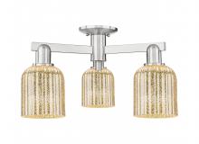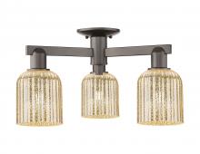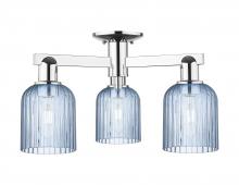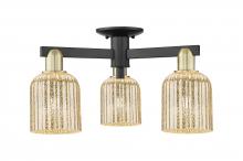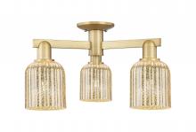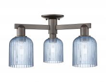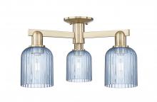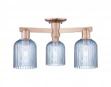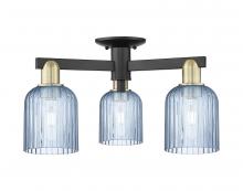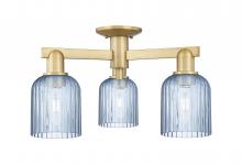 Bridal Veil - 3 Light - 6 inch - Antique Brass - Blue Deco Swirl Shade - Semi-Flush Mount