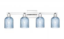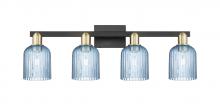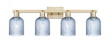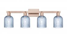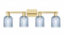 Bridal Veil - 4 Light - 36 inch - Antique Brass - Blue Deco Swirl Shade - Bath Vanity Light