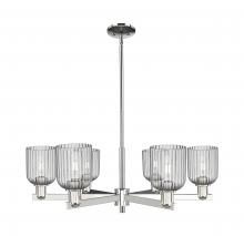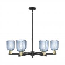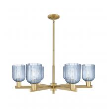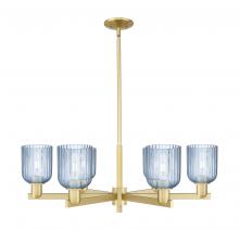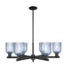 Bridal Veil - 6 Light - 24 inch - Antique Brass - Blue Deco Swirl Shade - Chandelier