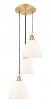 Bristol - 3 Light - 16 inch - Antique Brass - Matte White Shade - Cord Hung - Multi Pendant