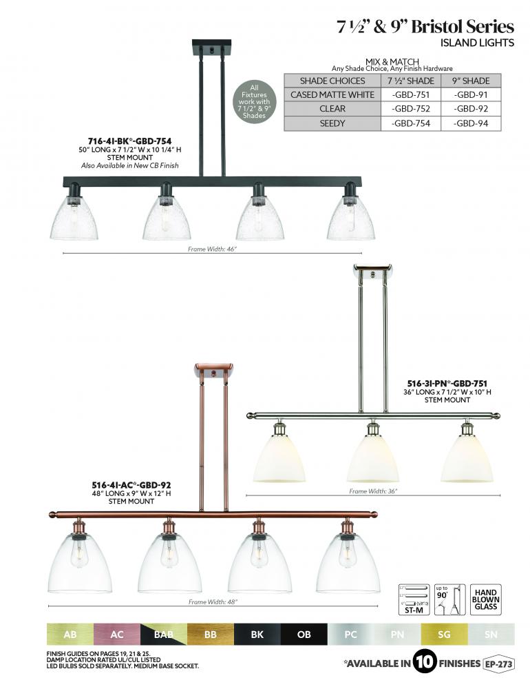 Bristol - 4 Light - 48 inch - Antique Brass - Stem hung - Island Light