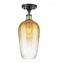 Brookhaven Flute - 1 Light - 7 inch - Antique Brass - Amber Brookhaven Flute shade - Semi-Flush Mount
