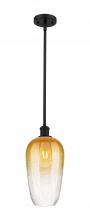 Brookhaven Flute - 1 Light - 7 inch - Antique Brass - Amber Brookhaven Flute shade - Stem hung - Mini Pendant