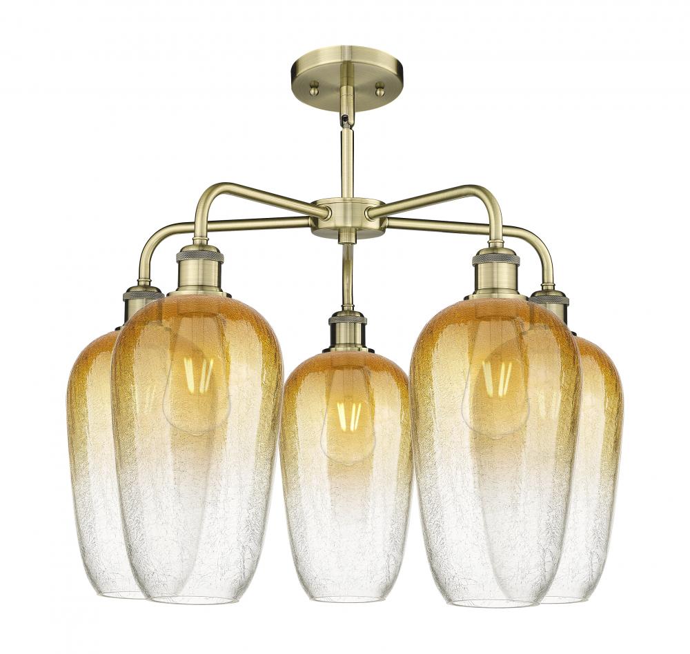 Brookhaven Flute - 5 Light - 26 inch - Antique Brass - Amber Brookhaven Flute shade - Stem hung - Chandelier