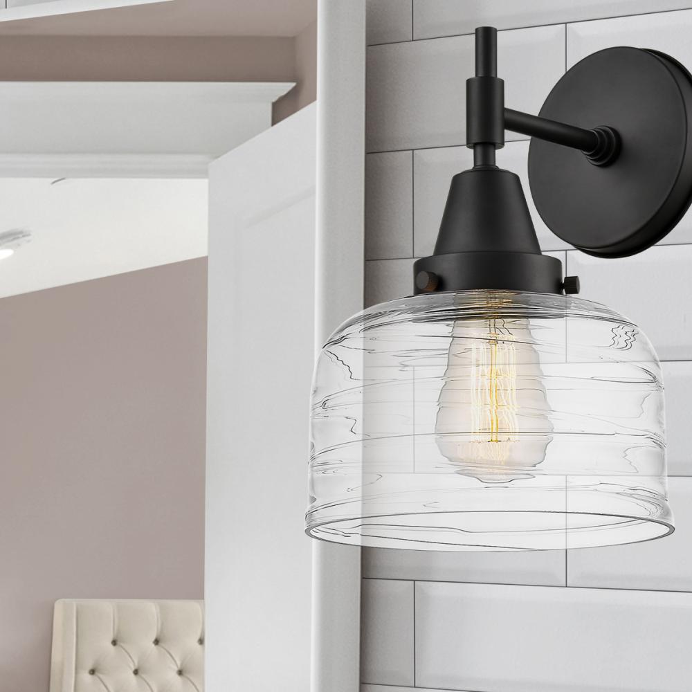 Caden - 1 Light - 8 inch - Matte Black - Clear Deco Swirl Shade - Sconce