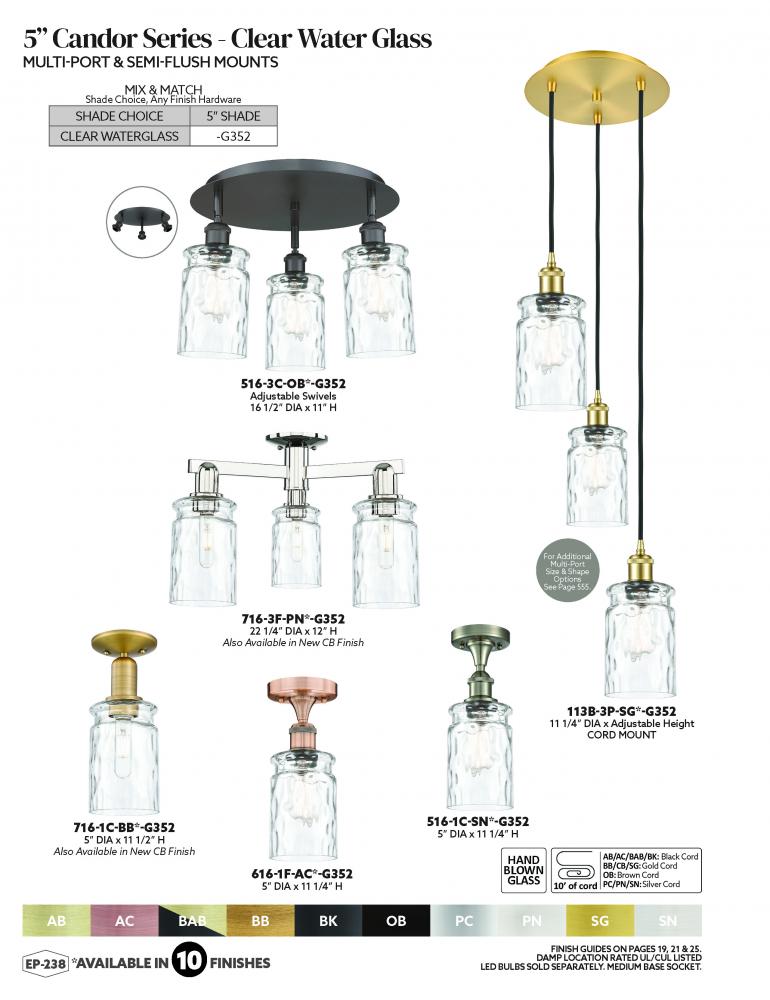 Candor - 1 Light - 5 inch - Antique Brass - Clear Waterglass shade - Semi-Flush Mount