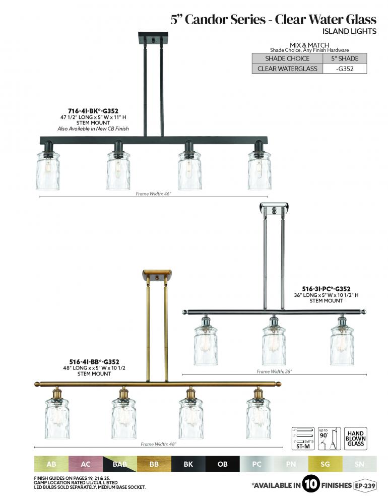 Candor - 3 Light - 36 inch - Antique Copper - Clear Waterglass Shade - Stem hung - Island Light