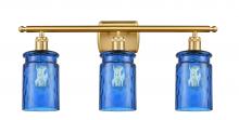 Candor - 3 Light 26" Bath Vanity Light - Incandescent Bulb - Antique Copper Finish - Princess Blue Waterglass Shade