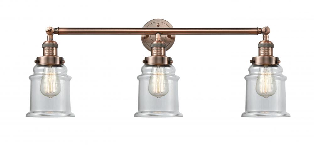 Canton - 3 Light - 30 inch - Antique Copper - Clear Shade - Bath Vanity Light