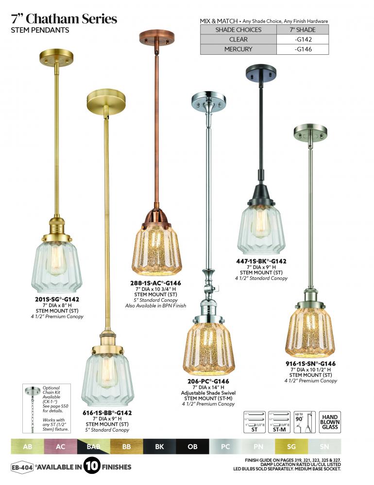 Chatham - 1 Light - 7 inch - Satin Gold - Mercury Shade - Stem Hung - Adjustable Mini Pendant