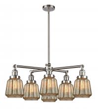 Chatham 6 Light Chandelier part of the Franklin Restoration Collection Mercury dissolves Silver and other metals to form amalgams in this Silver Plated Mercury glass for a beautiful reflection. The Body Height is 14 inches when the bulbs are facing up and 26 inch Height when the bulbs are facing down. Solid Brass 90 Degree Hang Straight Swivel for Sloped Ceilings Included.