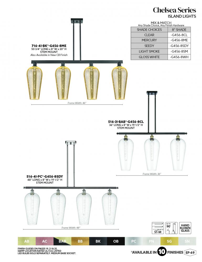 Chelsea - 4 Light - 48 inch - Antique Brass - Clear Chelsea shade - Stem Hung - Island Light