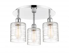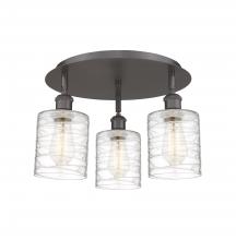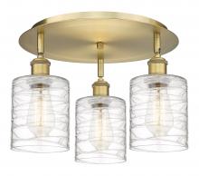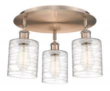 Cobbleskill - 3 Light - 17 inch - Antique Brass - Deco Swirl Shade - Semi-Flush Mount