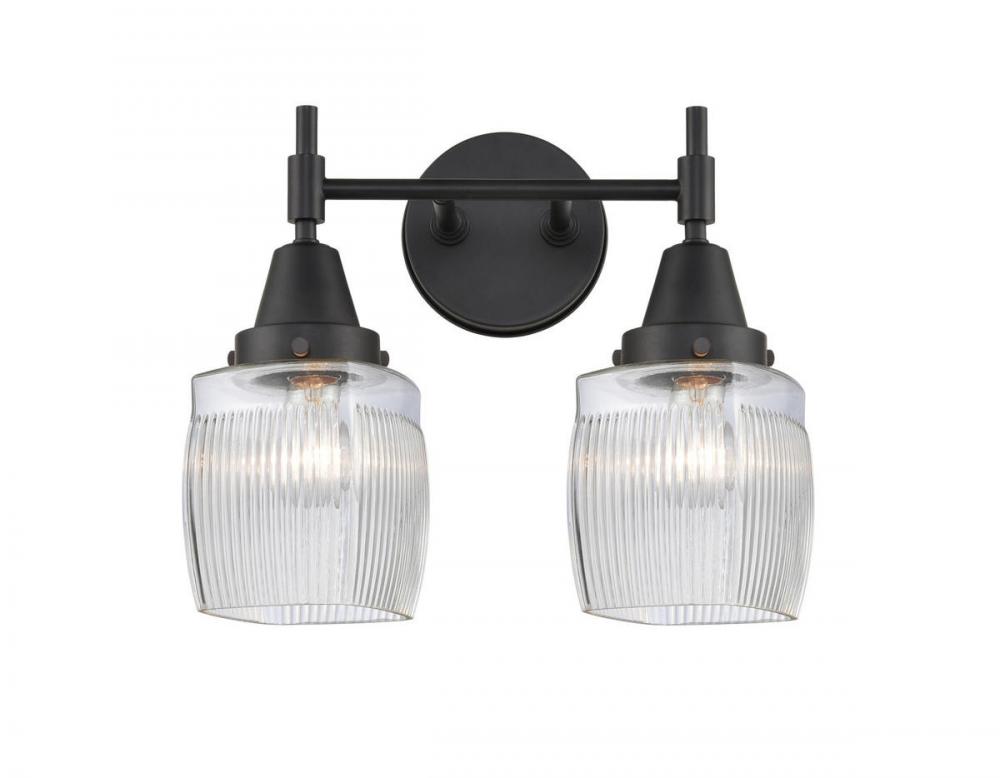 Colton - 2 Light - 15 inch - Matte Black - Clear Halophane Shade - Bath Vanity Light