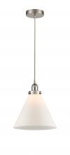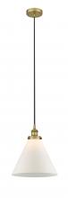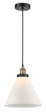 Cone - 1 Light - 12 inch - Antique Brass - Matte White Shade - Cord hung - Mini Pendant