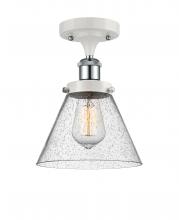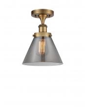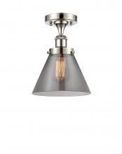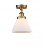 Cone - 1 Light - 8 inch - Brushed Satin Nickel - Matte White Shade - Semi-Flush Mount