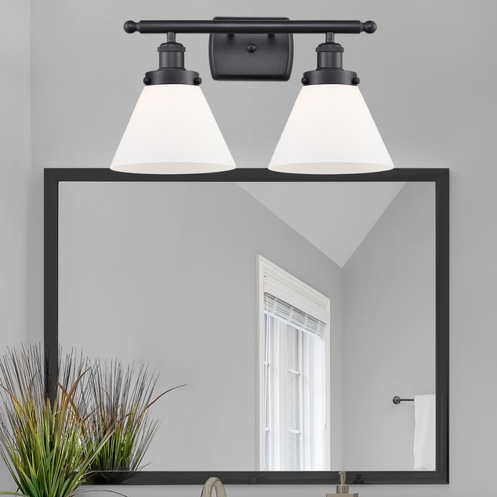 Cone - 2 Light - 18 inch - Matte Black - Matte White Shade - Bath Vanity Light