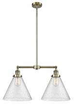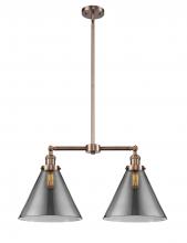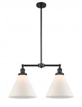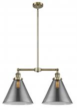 Cone - 2 Light - 21 inch - Antique Brass - Matte White Shade - Stem Hung - Adjustable Island Light