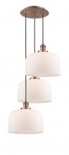 Cone - 3 Light - 18 inch - Antique Brass - Matte White Shade - Cord hung - Multi Pendant