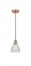 Conesus - 1 Light - 6 inch - Antique Brass - Clear Crackle Shade - Cord hung - Mini Pendant