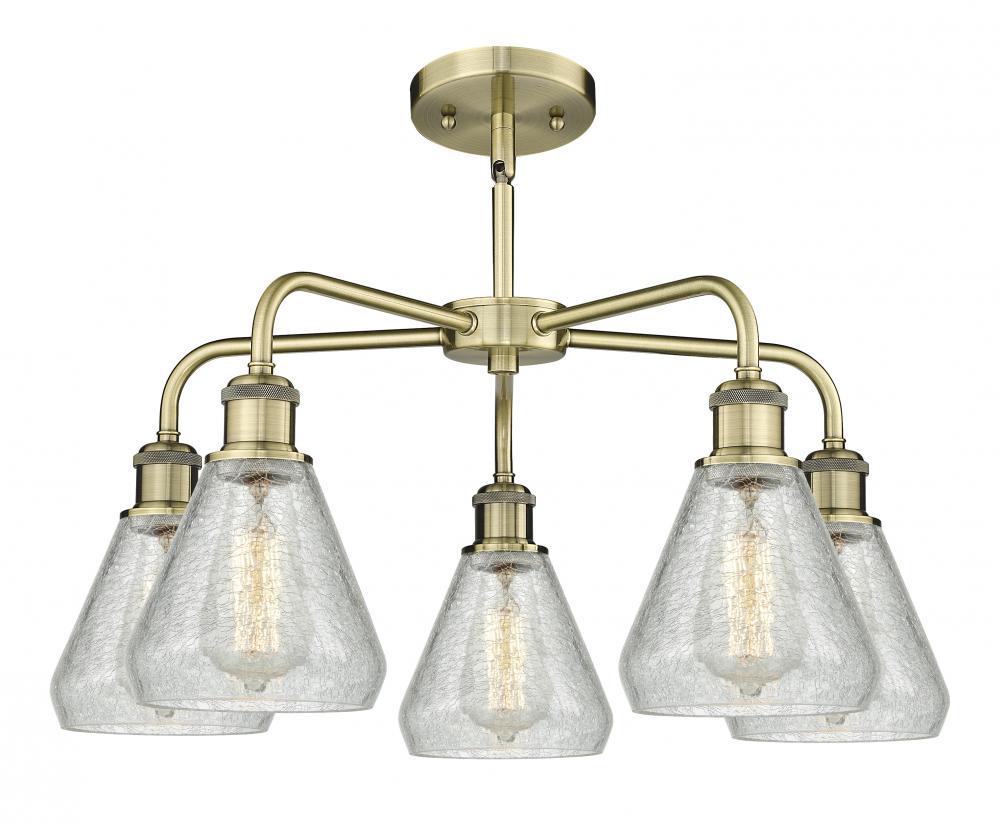 Conesus - 5 Light - 24 inch - Antique Brass - Clear Crackle Shade - Chandelier