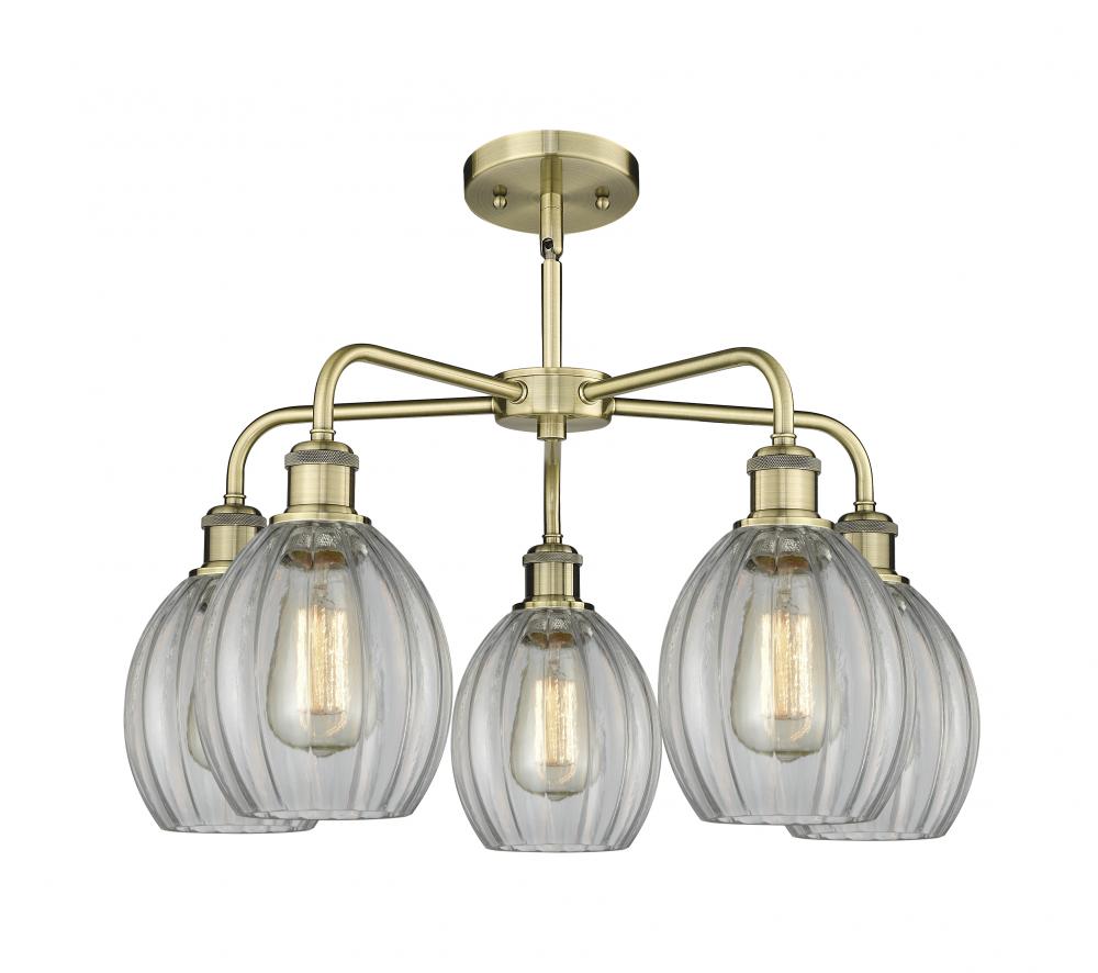 Eaton - 5 Light - 24 inch - Antique Brass - Clear Shade - Chandelier