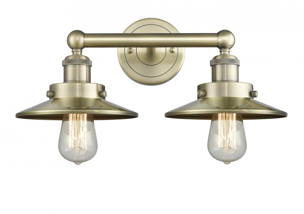 Edison - 2 Light - 17 inch - Antique Brass - Antique Brass Shade - Bath Vanity Light
