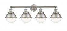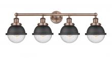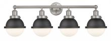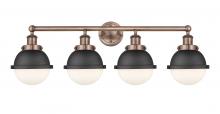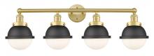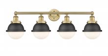 Edison - 4 Light - 34 inch - Antique Brass - Matte Black Hampden 6" with Matte White glass Shade - Bath Vanity Light