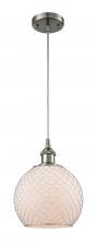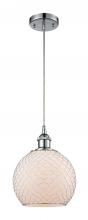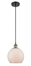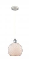 Farmhouse Chicken Wire - 1 Light - 8 inch - Matte Black - White Glass with Black Wire Shade - Cord hung - Mini Pendant