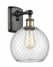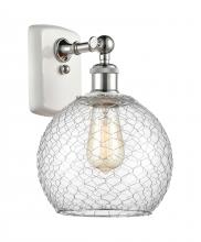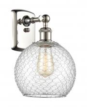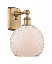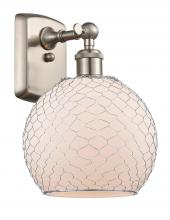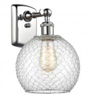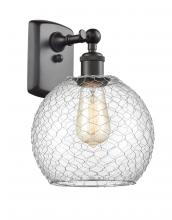 Farmhouse Chicken Wire - 1 Light - 8 inch - Matte Black - White Glass with Black Wire Shade - Sconce