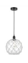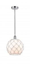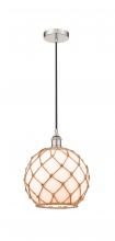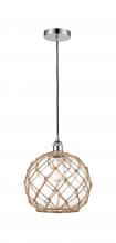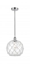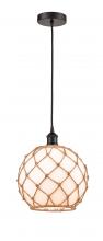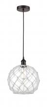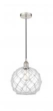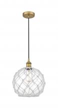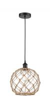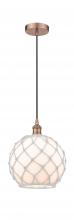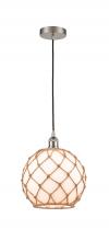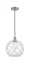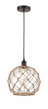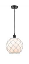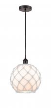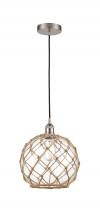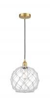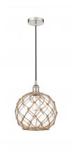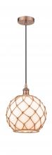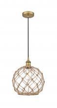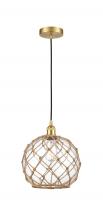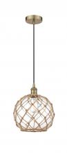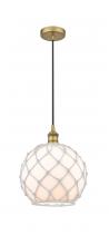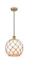 Farmhouse Rope - 1 Light - 10 inch - Antique Brass - White Glass with Brown Rope Shade - Cord hung - Mini Pendant