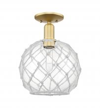 Farmhouse Rope - 1 Light - 10 inch - Antique Brass - Matte White shade - Semi-Flush Mount