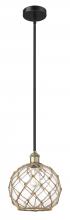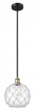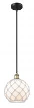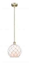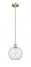 Farmhouse Rope - 1 Light - 10 inch - Antique Brass - White Glass with Brown Rope Shade - Stem hung - Mini Pendant