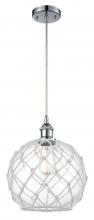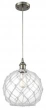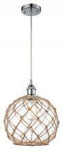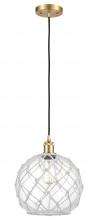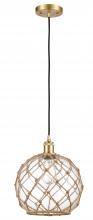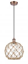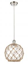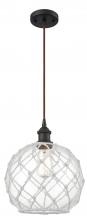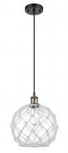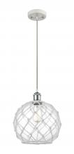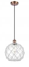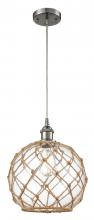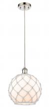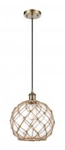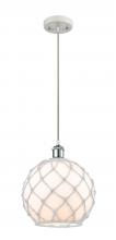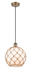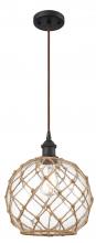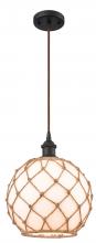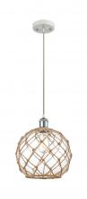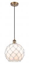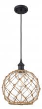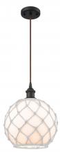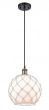 Farmhouse Rope - 1 Light - 10 inch - Matte Black - White Glass with Brown Rope Shade - Cord hung - Mini Pendant