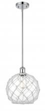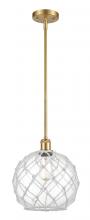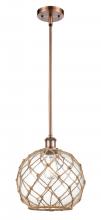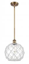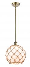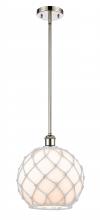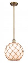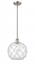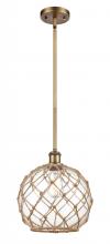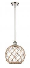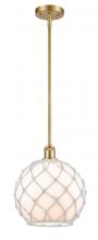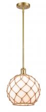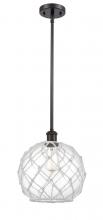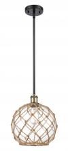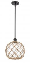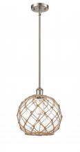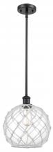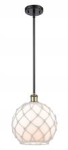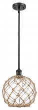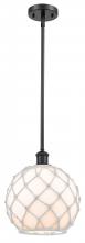 Farmhouse Rope - 1 Light - 10 inch - Matte Black - White Glass with Brown Rope Shade - Mini Pendant
