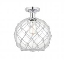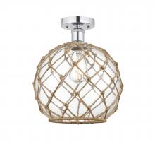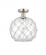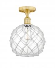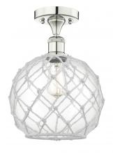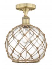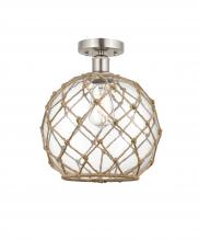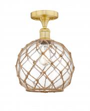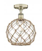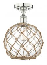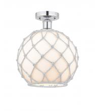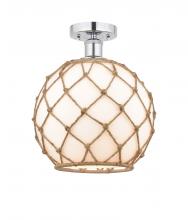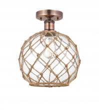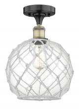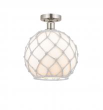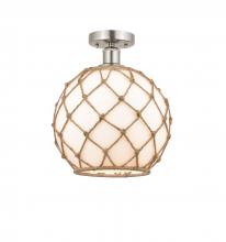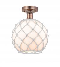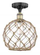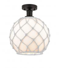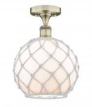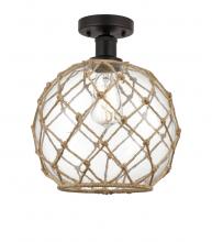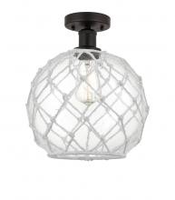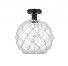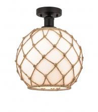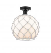 Farmhouse Rope - 1 Light - 10 inch - Matte Black - White Glass with Brown Rope Shade - Semi-Flush Mount