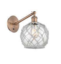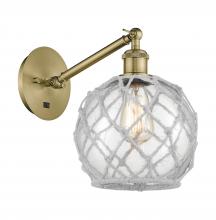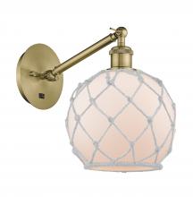 Farmhouse Rope - 1 Light - 8 inch - Antique Brass - White Glass with Brown Rope Shade - Adjustable Sconce